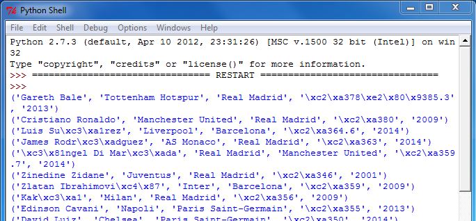 b=htql.Browser(); p=b.goUrl(“http://en.wikipedia.org/wiki/List_of_most_expensive_association_football_transfers");
