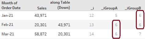 February will be in Group B when we want it’s previous month, and in Group A when it is the previous month.