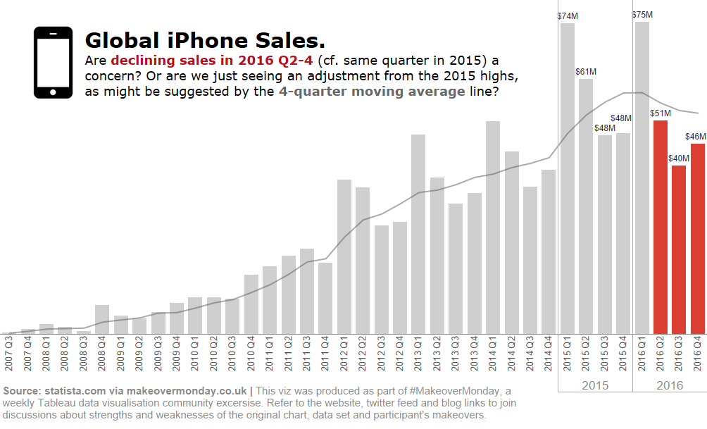 A reviz of global iPhone sales over the last decade for week two of Makeover Monday in 2017.