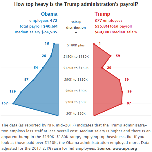 Is the Trump administration payroll top heavy? Well there is a bump, but actually I’m not so sure! Makeover below. Also available on Tableau Public here.