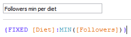 First up I defined the minimum and maximum percentage (followers) for each diet regardless of continent. This was done using two LOD calculations. Here is an example: