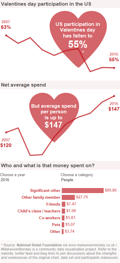 Love is in the air this week with a makeover of an infographic on valentines day spending in the US.