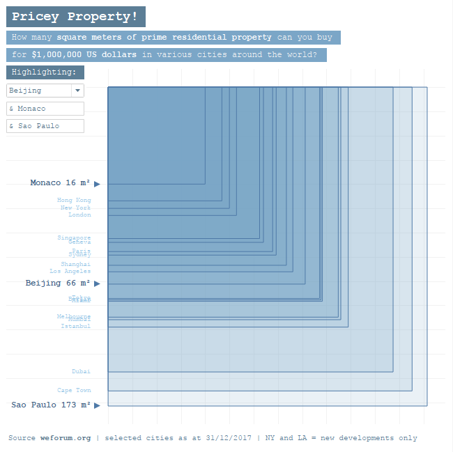 Where is some of the worlds priciest residential property? For week 22 of #MakeoverMonday we look at a World Economic Forum chart trying to answer that question.