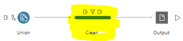 The first thing you may notice is that there is only one source: a UNION to pull the two required data sets together. That might seem strange to you as the two tables of data are quite different. I’m going to add a quick “clean” step off the union to take a look at what it’s producing:
